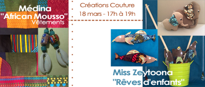 Vous y serons proposés des objets utilitaires ou décoratifs ornés de peinture «suwer», des vanneries agrémentées de cuir, des créations à base de textiles teints à l’indigo, des bougeoirs de métal vieilli, des colliers ethniques et bien sur des créations textiles en wax.